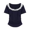 Sommer Damen Neues Spitzen Gartenkragen Slim-Fit Kurzarm T-Shirt Top