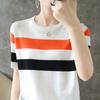 Gestreifter Rundhals-Pullover aus Eisseide für Damen Sommer Locker und Vielseitig Kurzarm-Oberteil
