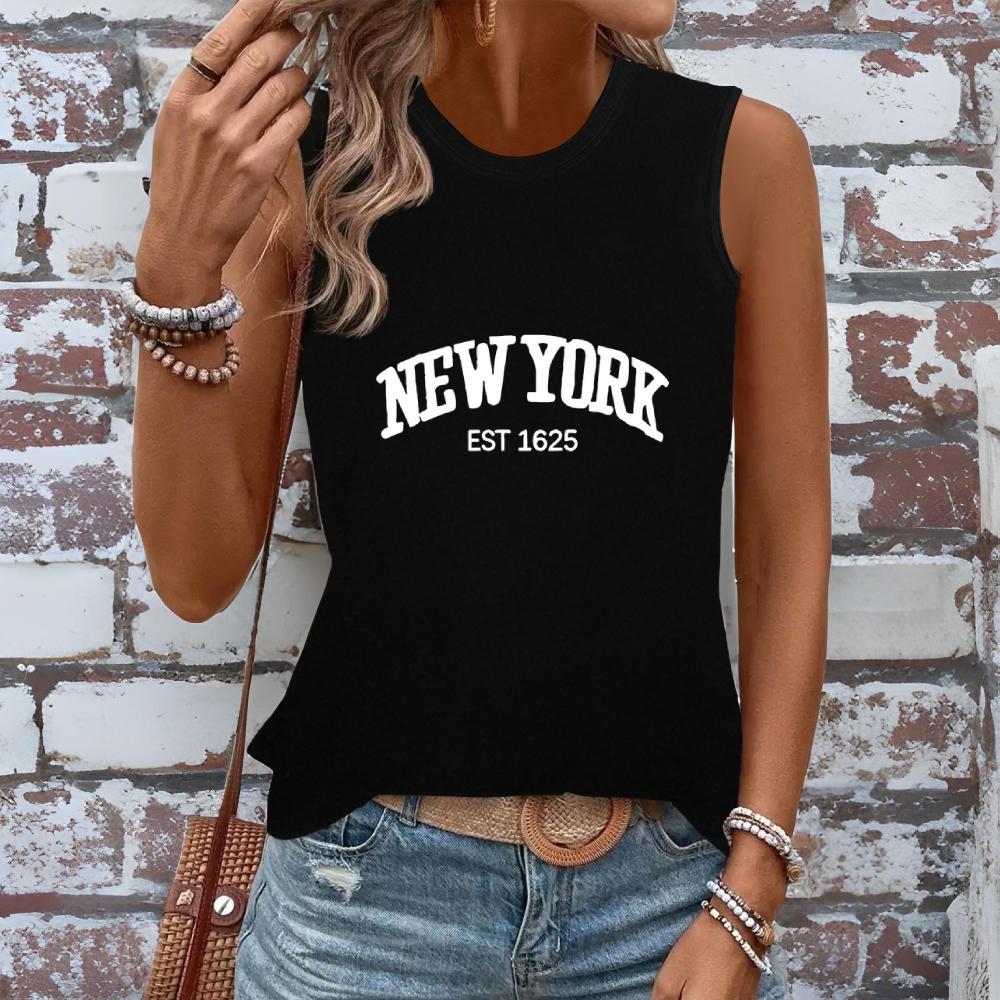 Women's clothing, new printed sleeveless T-shirts, summer and spring casual loose sleeveless tops, daily street tops, clothing sets