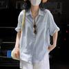 Japanisches lässiges Lazy-Style Kurzarm-Streifenshirt für Damen Sommer locker dünn literarisch kurzärmeliges Oberteil 5021