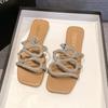 Koreanische Version von Strass Schlangenkopf Typ flache Hausschuhe Damen Flache Hausschuhe eckige Zehenpartie Hausschuhe schwarz
