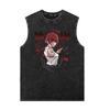 Chainsaw Man Anime Print Vintage Gewaschenes Kurzarm-Tanktop Gym T-Shirt Trendiges Unisex Ärmelloses Tanktop Männer Frauen