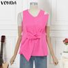 VONDA Damen Rundhals Ärmellos Frontknoten Patchwork Einfarbig Tanktops