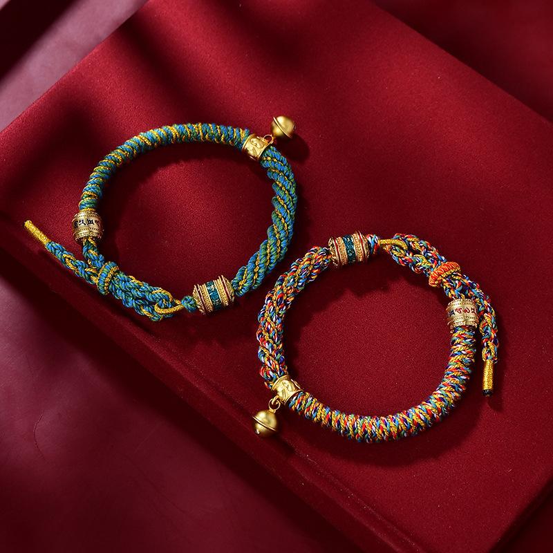 Handgewebtes tibetisches Armband Bunter Faden Glücksbringer Seilarmband mit Glocke Damen Armreifen