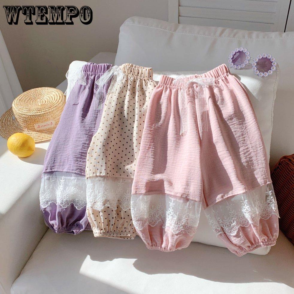 Children's Korean Pants with Lace Patchwork Mosquito Repellent Versatile and Sweet Drawstring Casual Pants