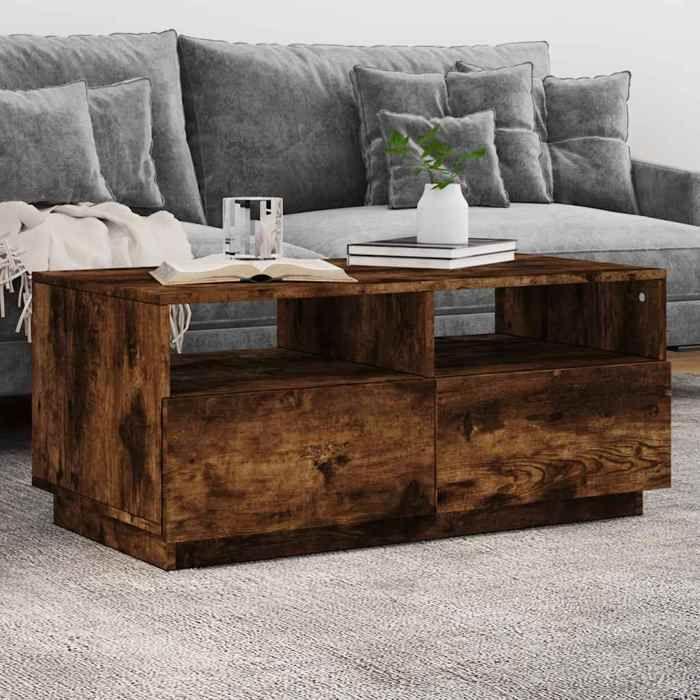 VidaXL Table Basse avec Lumières LED, Table d'Appoint avec Tiroirs, Bout de Canapé, Meuble de Salon Salle de Séjour, 839837