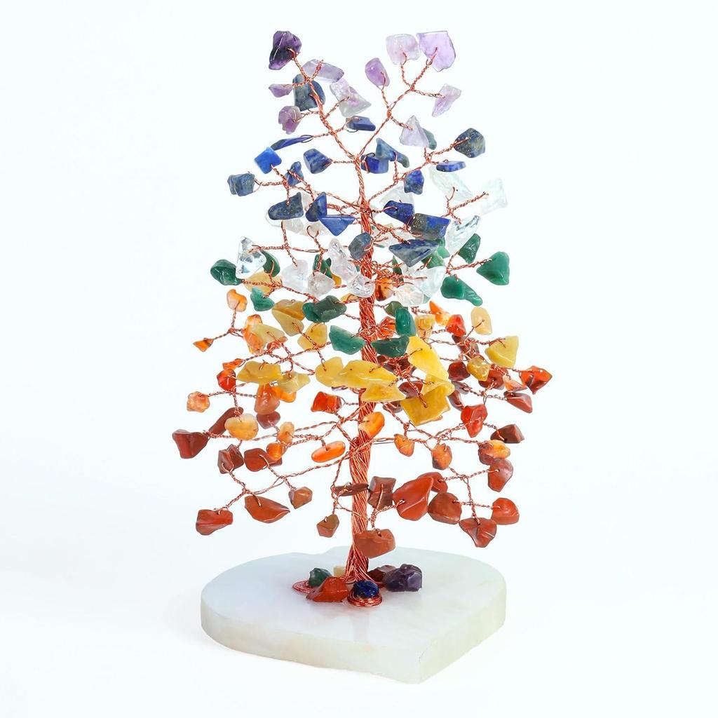 Gemstone Bonsai Tree with Healing Crystals – 7 Chakra Heart Base Feng Shui Showpiece Home & Office Décor – Housewarming Gift - Chakra Tree
