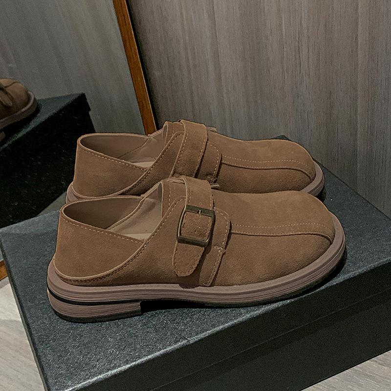 Leder zwei Schuhe Damen Herbst neu vielseitig Retro ein Pedal dick Absatz einzelne Schuhe