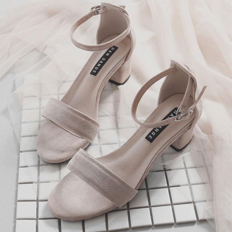Huizhou Damenschuhe mit Sandalen weiblich neu Fee dicker Absatz mittlerer Absatz Mädchen hohe Absätze