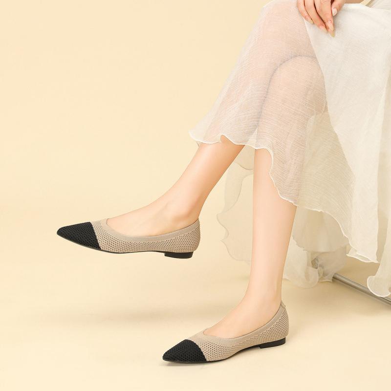 Gestrickte Einzelschuhe Damen neue Ein-Pedal-Weichsohlen-Fliegenstrickschuhe hohl und atmungsaktiv flachmündig spitz flache Schuhe