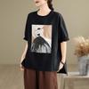 DIMANAF 2025 Sommer Übergröße T-Shirt Druck Damen Kurzarm O-Ausschnitt Kurze Lockere Oberteile T-Shirts