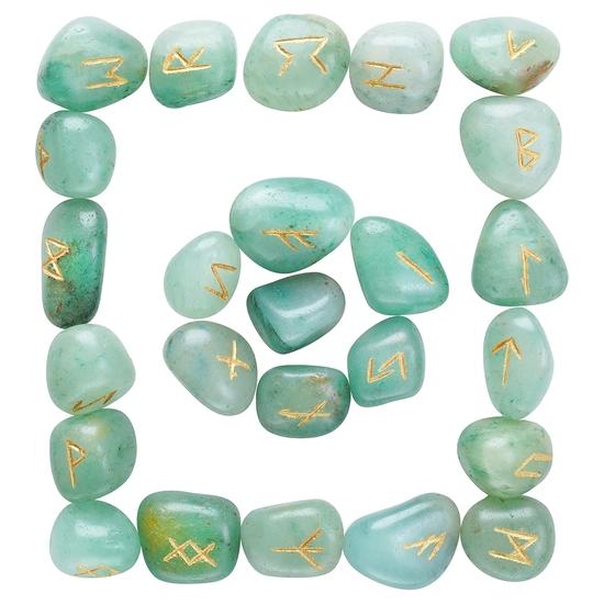 Crocon Grüner Jade Edelstein Runenstein mit Älterem Futhark Alphabet Graviertes Symbol 25 Stück Set : 15-25 mm