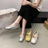 Silberne Einzel-Schuhe Ballerinas Schleife runde Zehenpartie Damen-Flats Damenschuhe