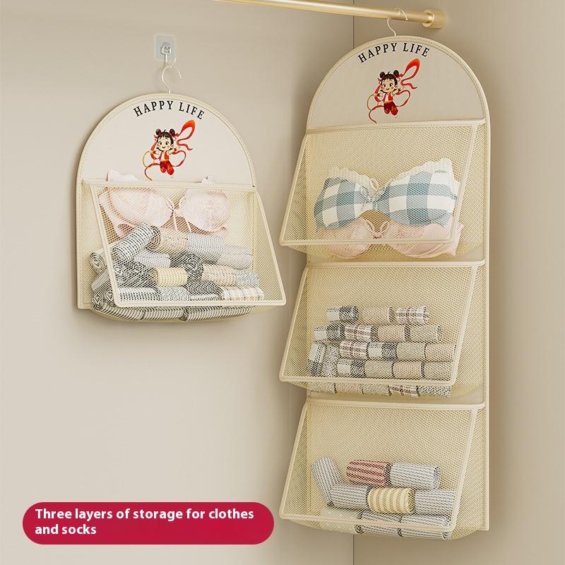 2/3-lagige Aufbewahrungstasche mit großem Fassungsvermögen, Netzbeutel zur Aufbewahrung von Unterwäsche und Socken, atmungsaktiver Schrankorganizer mit Kleiderbügel