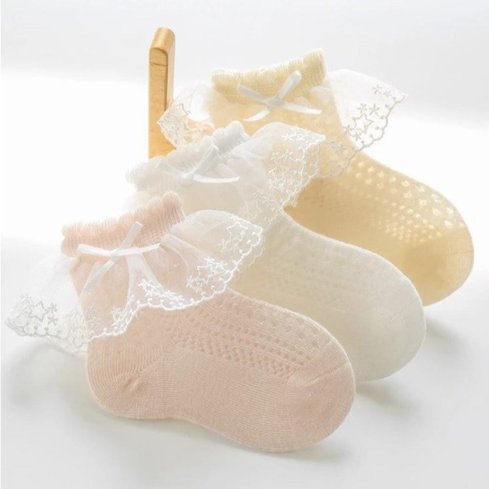 Dünne Netz-Babysocken Prinzessin Spitze Neugeborenen Kniestrümpfe Leichte Baumwollsocken Kinder