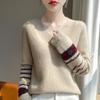 Women's Cardigan 100 Wool Autumn and Winter New Big V-neck Cuff Flower Cashmere Knitted Base Shirt Pullover Sweater