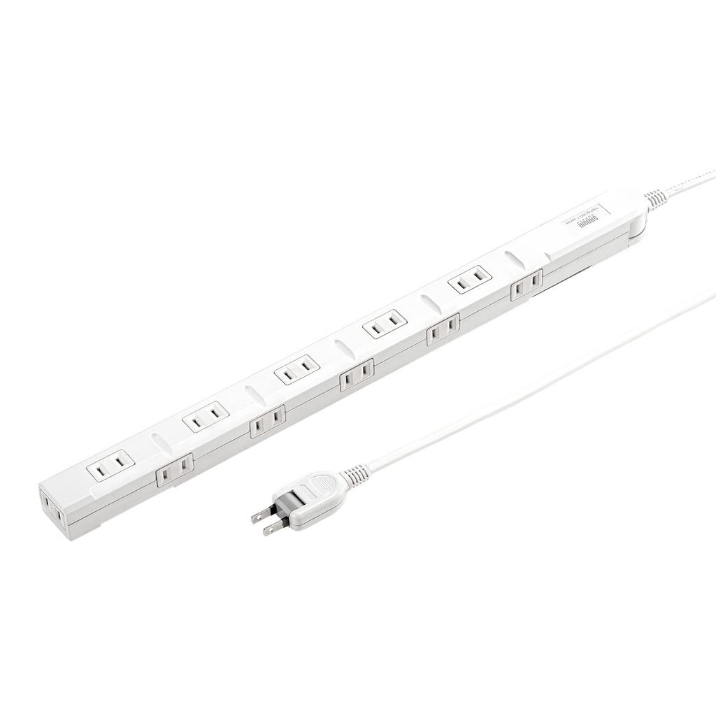 Sanwa Supply Power Strip, 11 Outlets, 2P, 1m, Slim, 180° Flexible Cord, Powerful Neo Magnet, Dust Shutter, Fixing Hook, White, TAP-SLIM11-1W