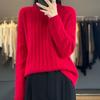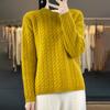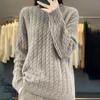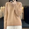 Rundhals 100% Reiner Cardigan für Damen Herbst und Winter Einfarbig Zopfmuster Pullover Locker und Vielseitig Warmer Kaschmir Basis Pullover