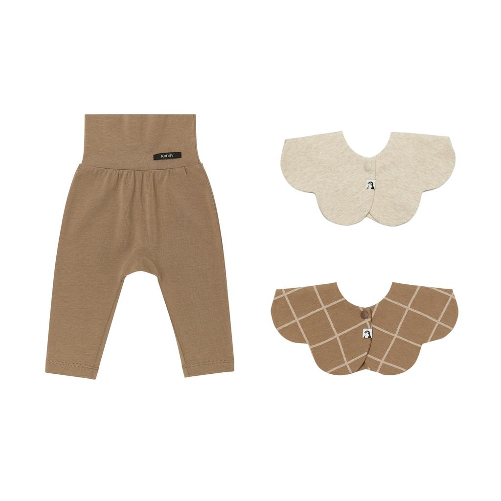 Soft Modal High Waist Leggings 1P Bib 2P Brown 6M [Konny] + C-set (Mocha, Check, Oatmeal)