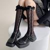 Spitzensocken für Damen im Sommer, dünne Lolita-Schleifen-Spitzen-Wadenlange Socken, herzförmiger Ausschnitt an der Seite, gerafftes langes Rohr