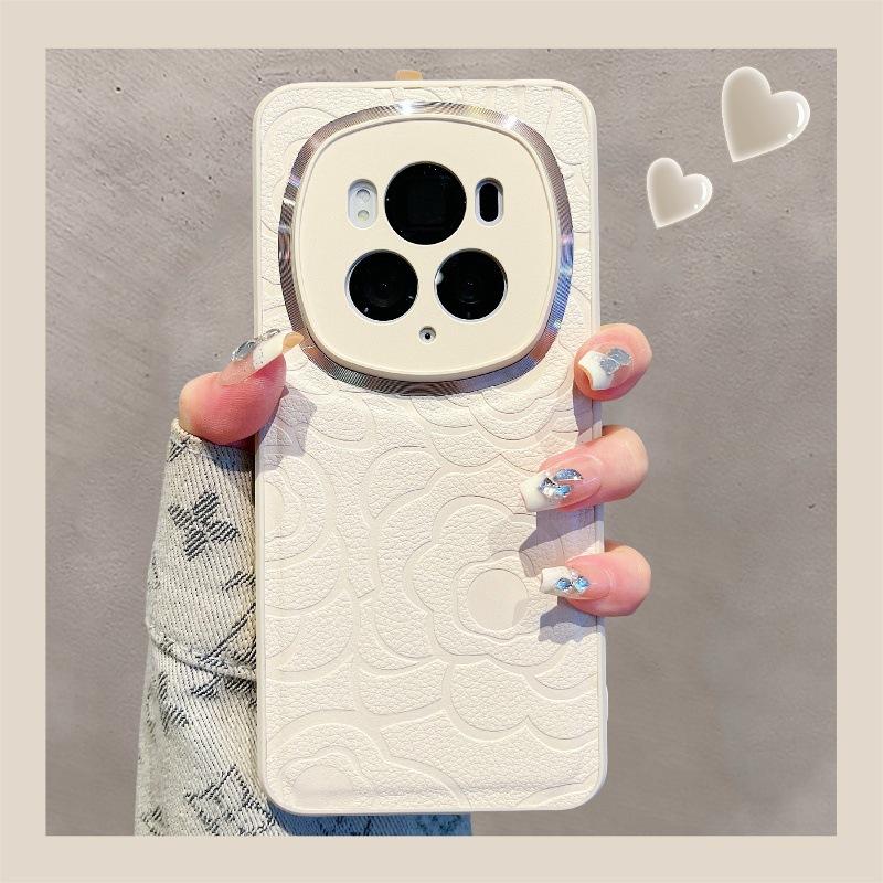 Kameliendesign aus Leder Geeignet für Honor Magic6 Handyhülle Kleiner Duftstil Metall-Objektivring Mate60 Schutzhülle Hart