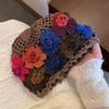 Women's Japanese-style Sweet Ethnic Style Hand-knitted Hat Spring Summer Thin Breathable Head Wrap Hat Colorful Floral Earflap Hat