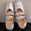 Silberne Schuhe mit dickem Absatz, die die Körpergröße erhöhen, Französischer Vintage-Stil, Damen Mary Janes, Lässig, Sportlich, Ballett, Einzelne Schuhe, Damen, Sommer, Gummisohle