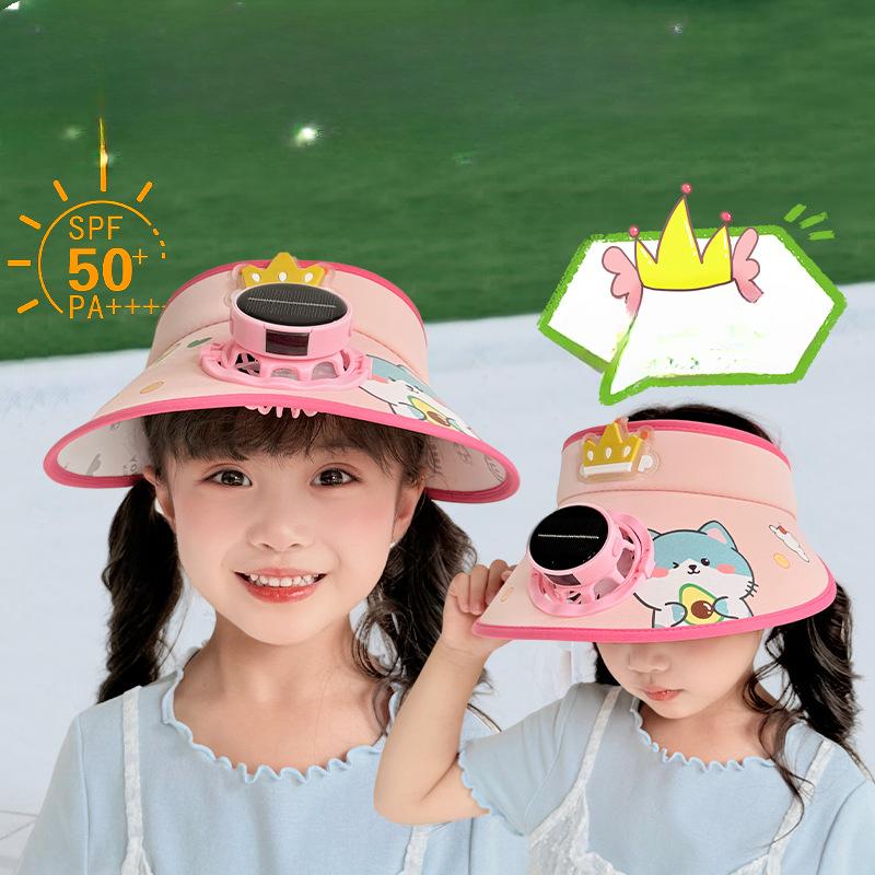 Sonnenhut mit Ventilator Kinder Sonnenschutzhut Jungen und Mädchen Sommer UV Zylinder Baby Sonnenhut