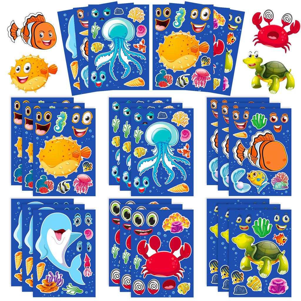 6 Fotos/Baotian Meeresleben Gesicht-verändernde Aufkleber für neues Kinder-Puzzlespielzeug Wiederholt klebende Puzzle-Aufkleber