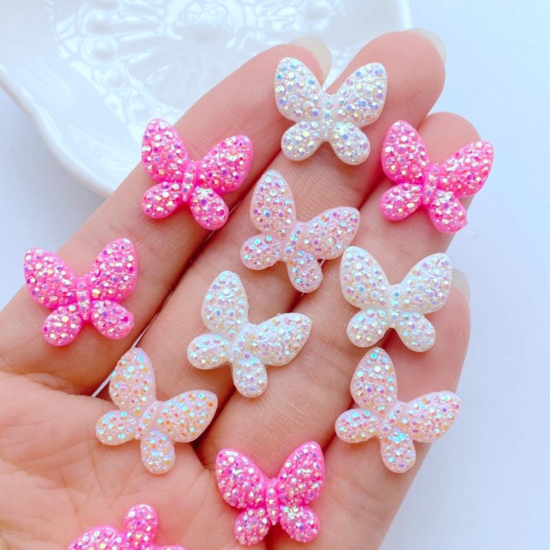 50Pcs New Cute Mini 14*15mm Shiny Butterfly Flat Back Resin Nail Enhancement Jewelry Craft Decoration Accessorie