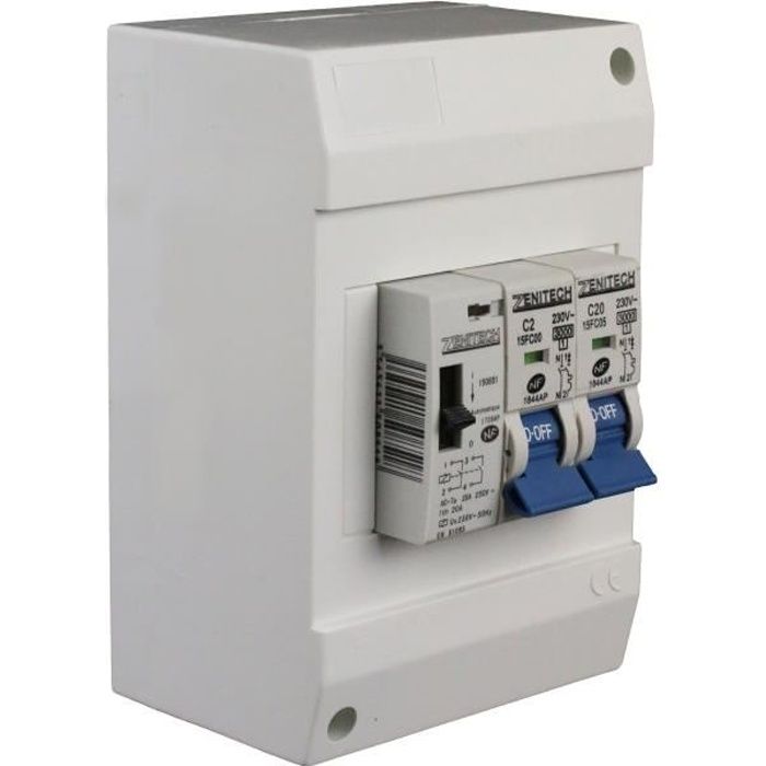 Coffret chauffe-eau ZENITECH pré-équipé muni d'un disjoncteur 2A+20A et 1 contacteur jour/nuit