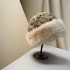 Korean Version, Leopard Print, Plush Fisherman Hat, Female, Autumn and Winter New Style, Small Face, Ear Protection Hat, Thick and Warm, Faux Fur Hat