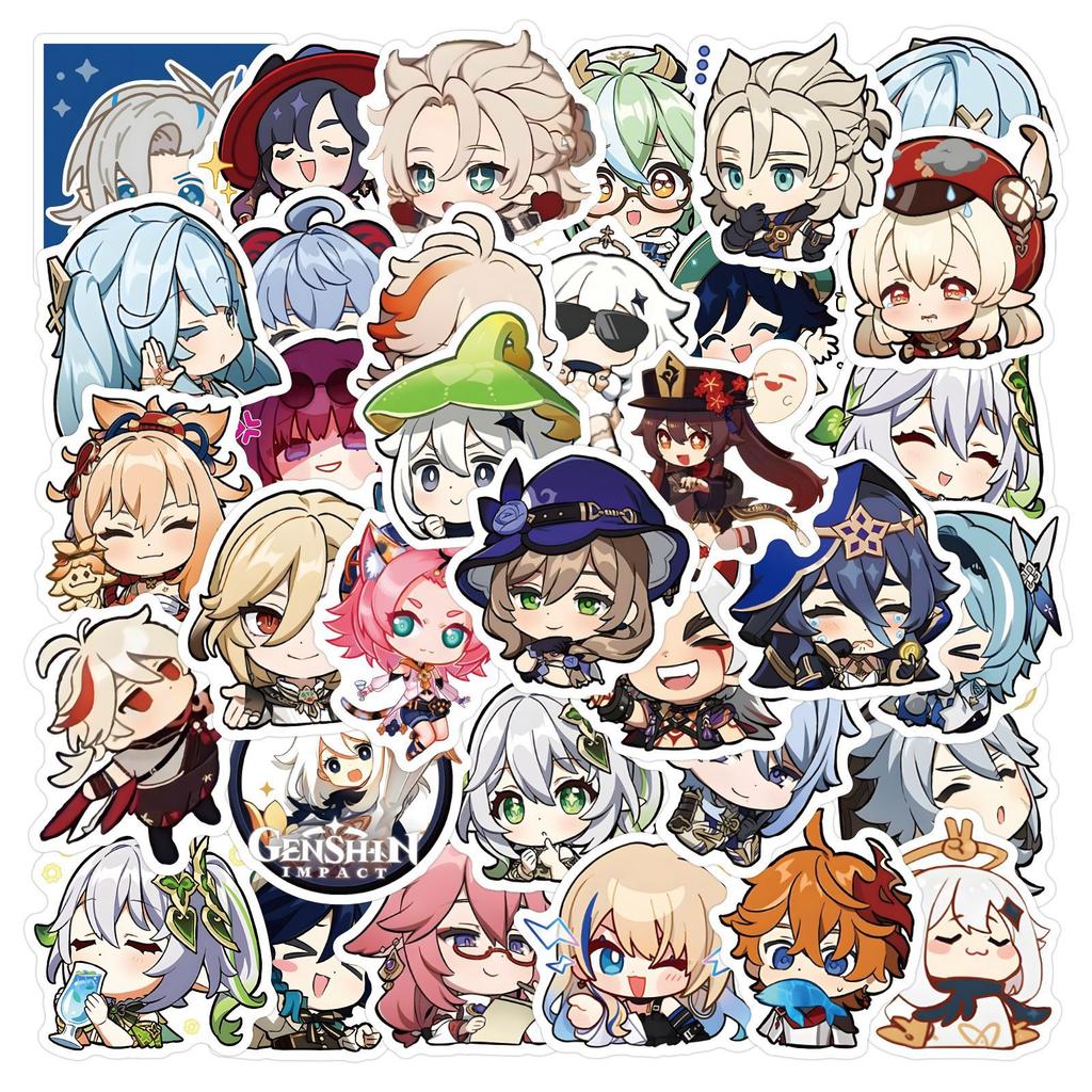 60 New Q-version Genshin Impact Graffiti Stickers, Laptop Water Cup Mobile Phone Case Decoration DIY Stickers