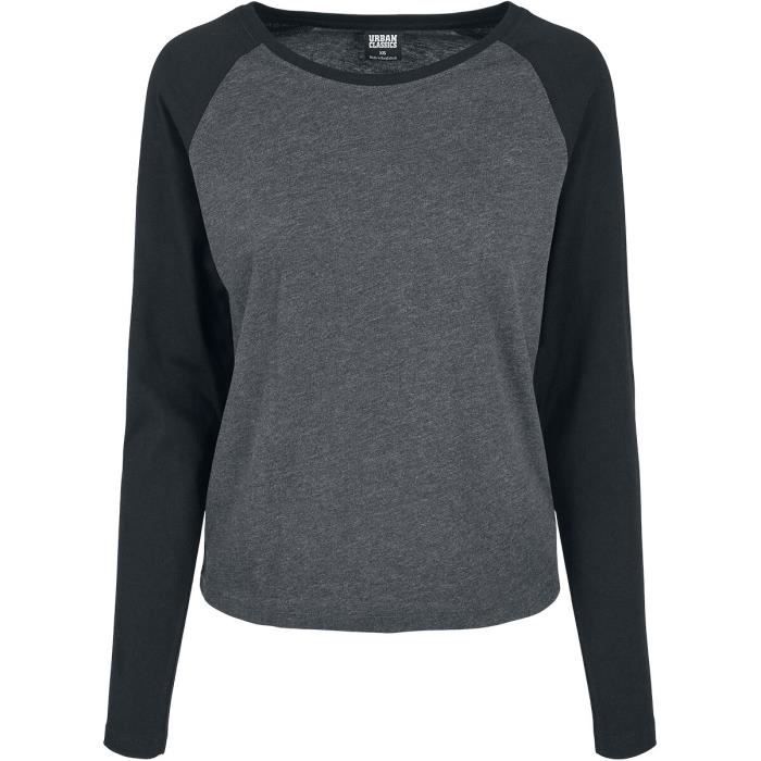 T-shirt manches longues anthracite/noir - URBAN CLASSICS - Ladies Contrast Raglan Longsleeve