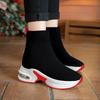 Lässige High on Platform Schuhe für Damen Frühling Herbst Stiefeletten Stilvoller Koreanischer Designer Stretch Gestrickt Slip On Damen Schuhwerk
