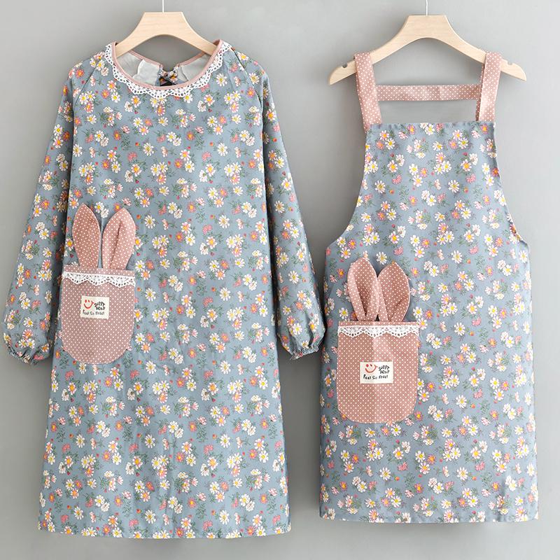Schürze aus Canvas mit langen Ärmeln im koreanischen Stil mit Blumenmuster: Niedlicher, Atmungsaktiver, Verschleißfester, Ölabweisender Küchenkittel für Damen
