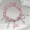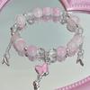 Korean Pink Crystal Flowers Butterfly Pendant Beaded Bracelet For Women Sweet Beads Chain Bracelets Girlfriend Jewelry Gifts
