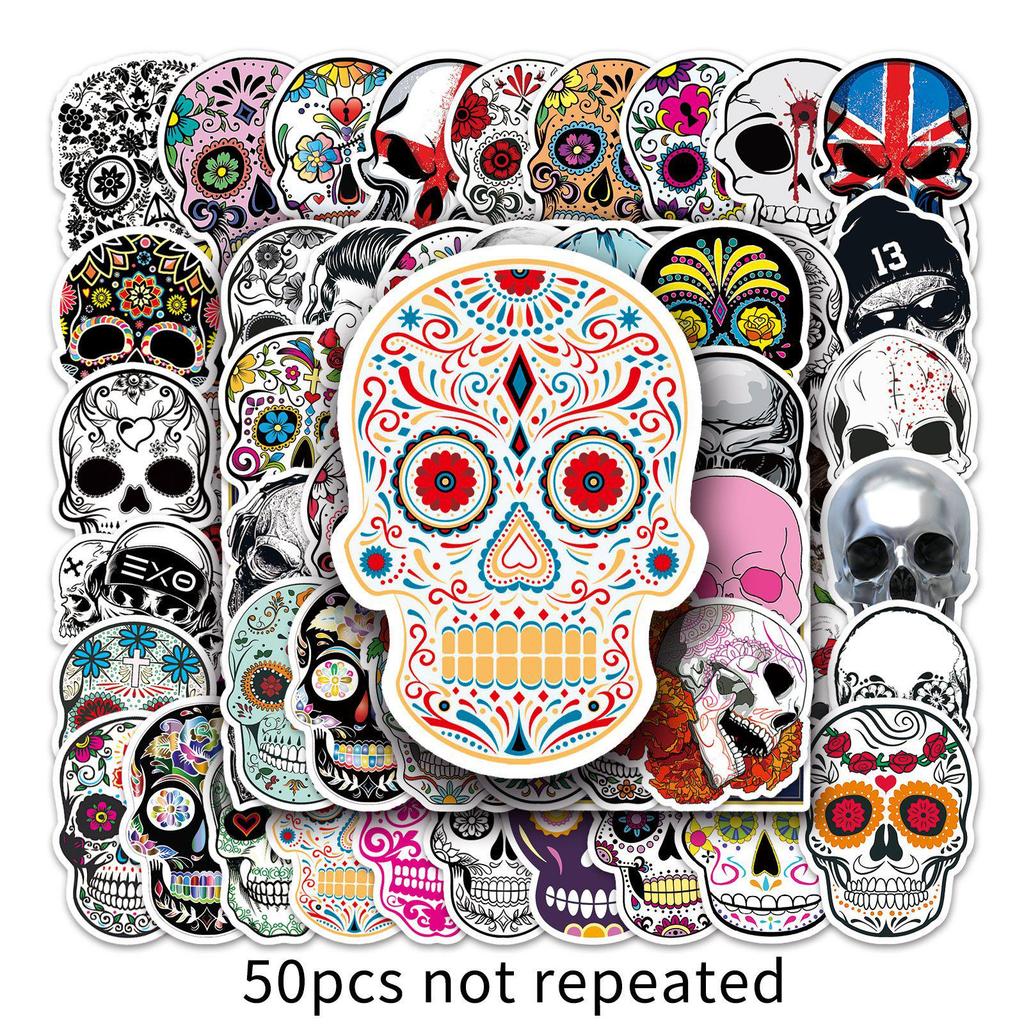 50 Totenkopf-Aufkleber: Horror DIY für Koffer, Handyhülle, Notizbuch, Halloween-Dekoration, Wasserdicht