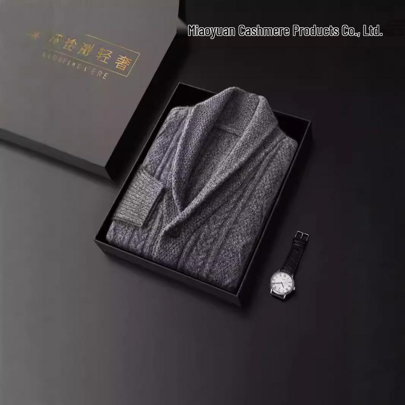Herren Leichter Luxus Woll-Cardigan-Pullover mit Taschen - Herbst/Winter Strickjacke