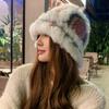 Color rabbit fur bucket hat women's autumn and winter handknitted wool hat warm fluff hat showing washbasin hat