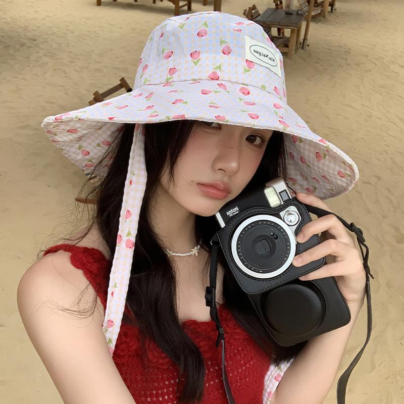 Kleiner frischer Karoprint Fischerhut für Damen Sommer mit breiter Krempe Sonnenschutz Sonnenhut Reise Foto Show Waschbeckenhut