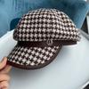 Frühling und Herbst Leder Spleiß Karomuster achteckige Mütze Kinder Metalllabel Retro vielseitige Baskenmütze Schiebermütze Tide