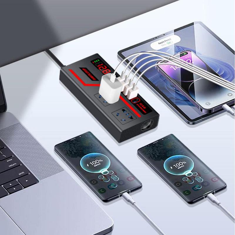 1 Piece Auto Accessories Usb Chargers Voltage Display Car Inverter Car Socket Usb Fast Charging 200W Qc 3.0 Power Adapter