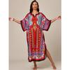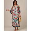 Strandbluse Bedruckt Ethnischer Stil Lange Robe Übergröße Lockeres Überwurfkleid