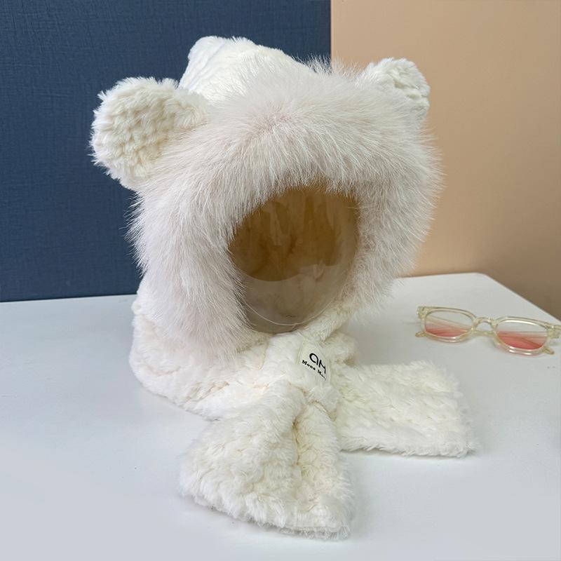 Cute bear hat scarf integrated women's winter new thickened warm ear protection cold cycling plush hat