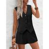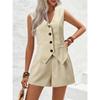 Damen Neuer Eleganter Pendler V-Ausschnitt Knopfdekoration Weste Shorts Kurzer Zweiteiler für Damen