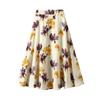 Qooth Elegant Printed Skirt Floral Printed Full Skirt Casual Chiffon Calf Length Skirt QT2111
