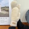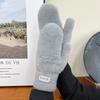 A pair of comfortable winter women's gloves, solid color striped woven warm connected finger gloves, double-layer thick gloves s