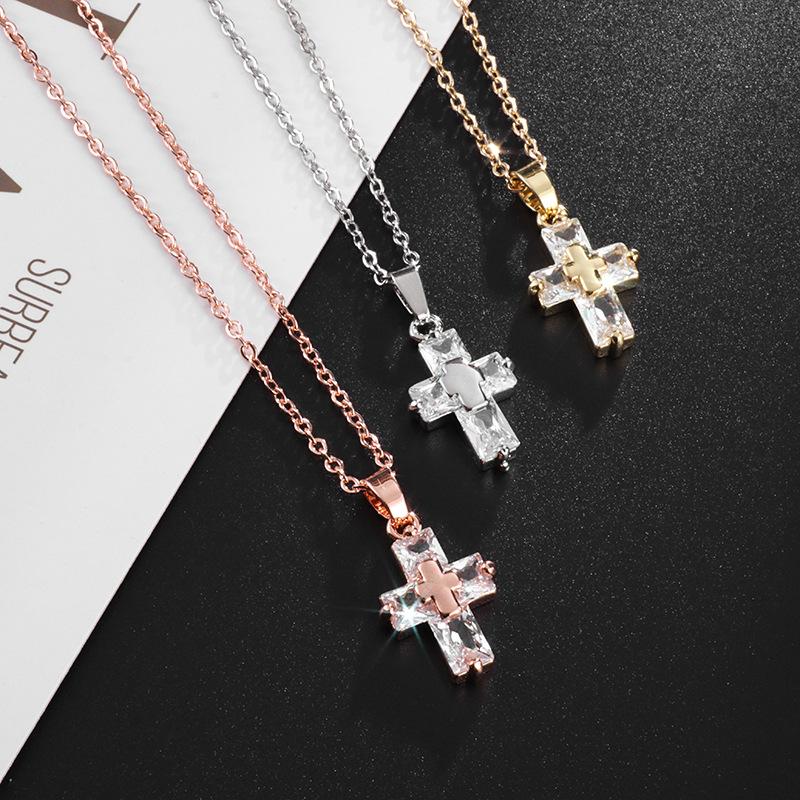 New Womens Party Classic Cross Inlay Zircon Pendant Necklace Jewelry Gift