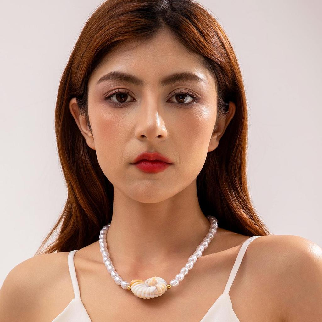 Modische und kreative Imitations-Unregelmäßige Perle Acryl Muschel Halskette für Damenschmuck Geeignet für Strandurlaub, Strandparty-Schmuck